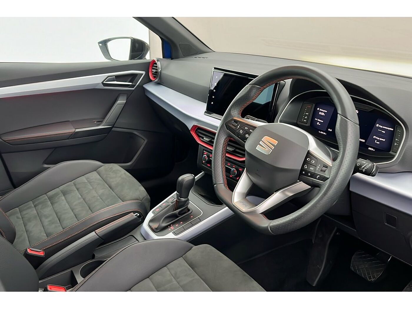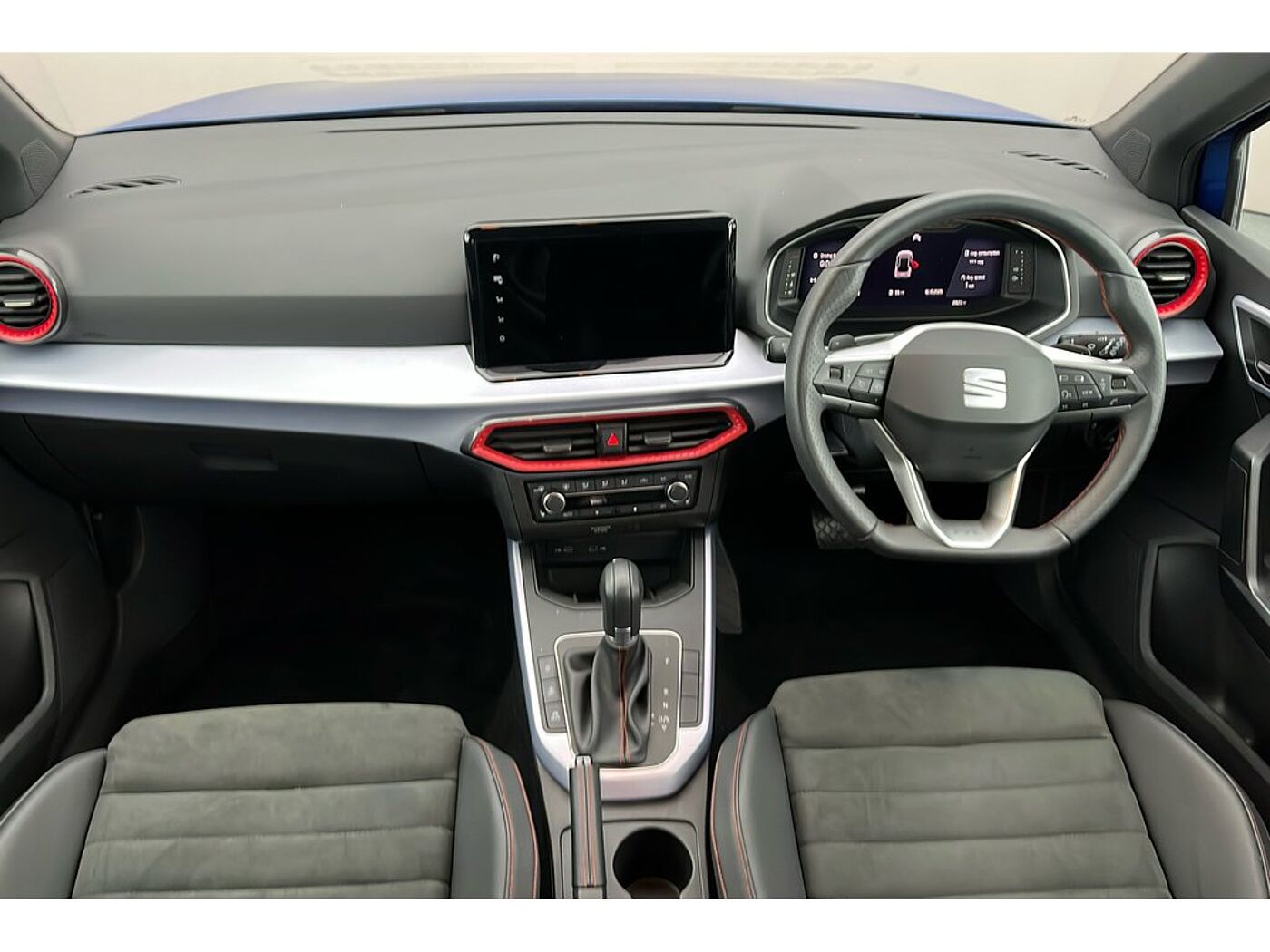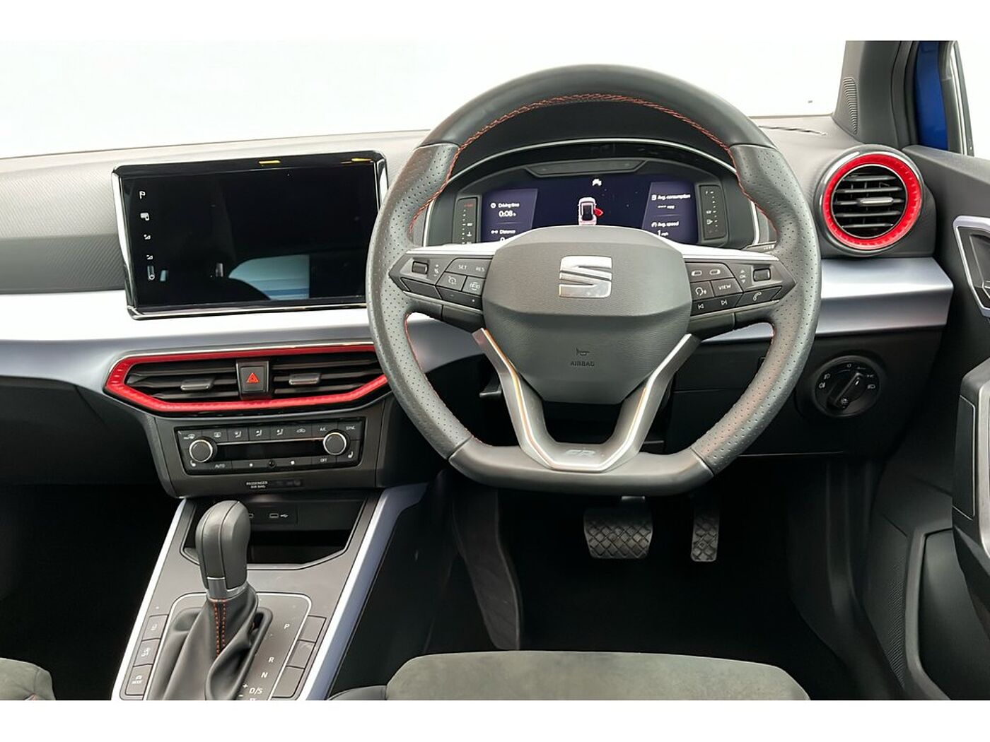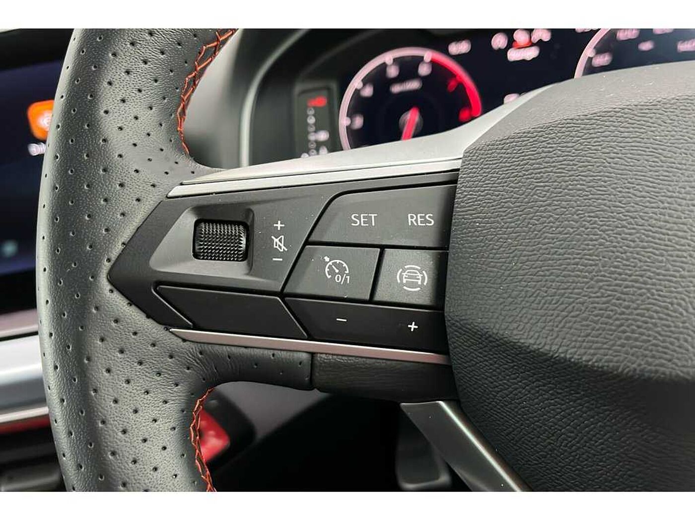 - Perforated Leather Flat-Bottomed Steering Wheel with Red Stitching and FR Logo with Leather Gear Knob and Handbrake